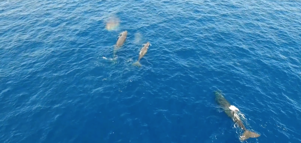 Whales swimming alongside the M/Y BELUGA